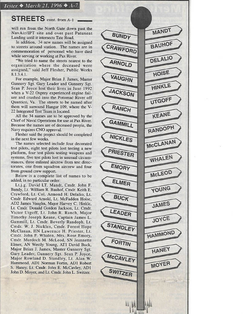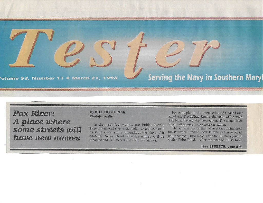 Pax River: A place where streets will have new names – Alan Hammond (22nd Co.) Posted byMatthew Elias March 21, 1996February 16, 2021