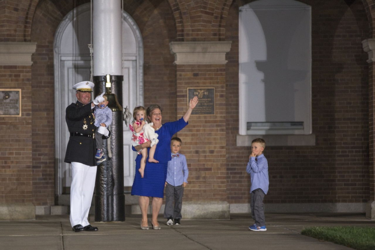 U.S. Marine Corps Lt. Gen. John E. Wissler, commander, Marine Corps Forces Command, waves farewell with his family during his retirement ceremony, Marine Barracks Washington, Washington, D.C., Sept. 22, 2017. Wissler retired after 39 years of service in the U.S. Marine Corps.