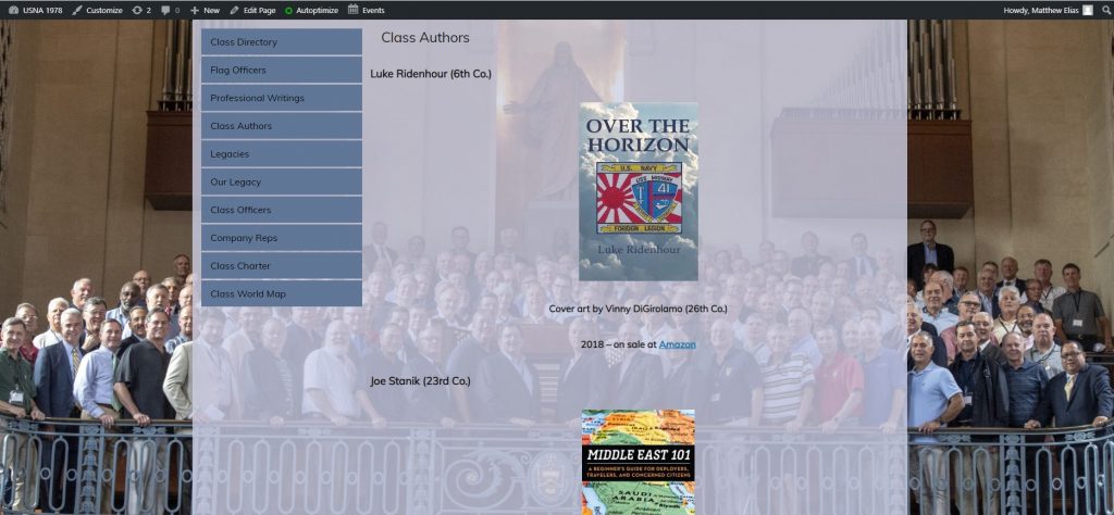 A Class Authors page has been added to the Class website under the Classmates section, just below the Professional Writings page. Right now we know of three authors in the class, Luke Ridenhour (6th Co.) has one book published, Joe Stanik (23rd Co) two and Sam Tangredi (17th Co.) five. If there are other published authors in our class we would love to add you and your works to the Class Authors page. Contact the class webmaster at webmaster@usna1978.org.