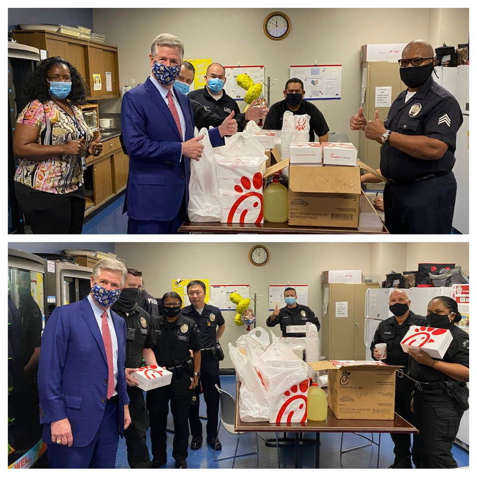 On Thursday, August 6th, John Semcken (2nd Co.) dropped off 60 Chick fil A box lunches to the west LA Precinct in appreciation for all their work and sacrifice to keep us safe everyday. In his Facebook post John said “Thank God for the blue!” and tagged his post with #SilentNoMore.