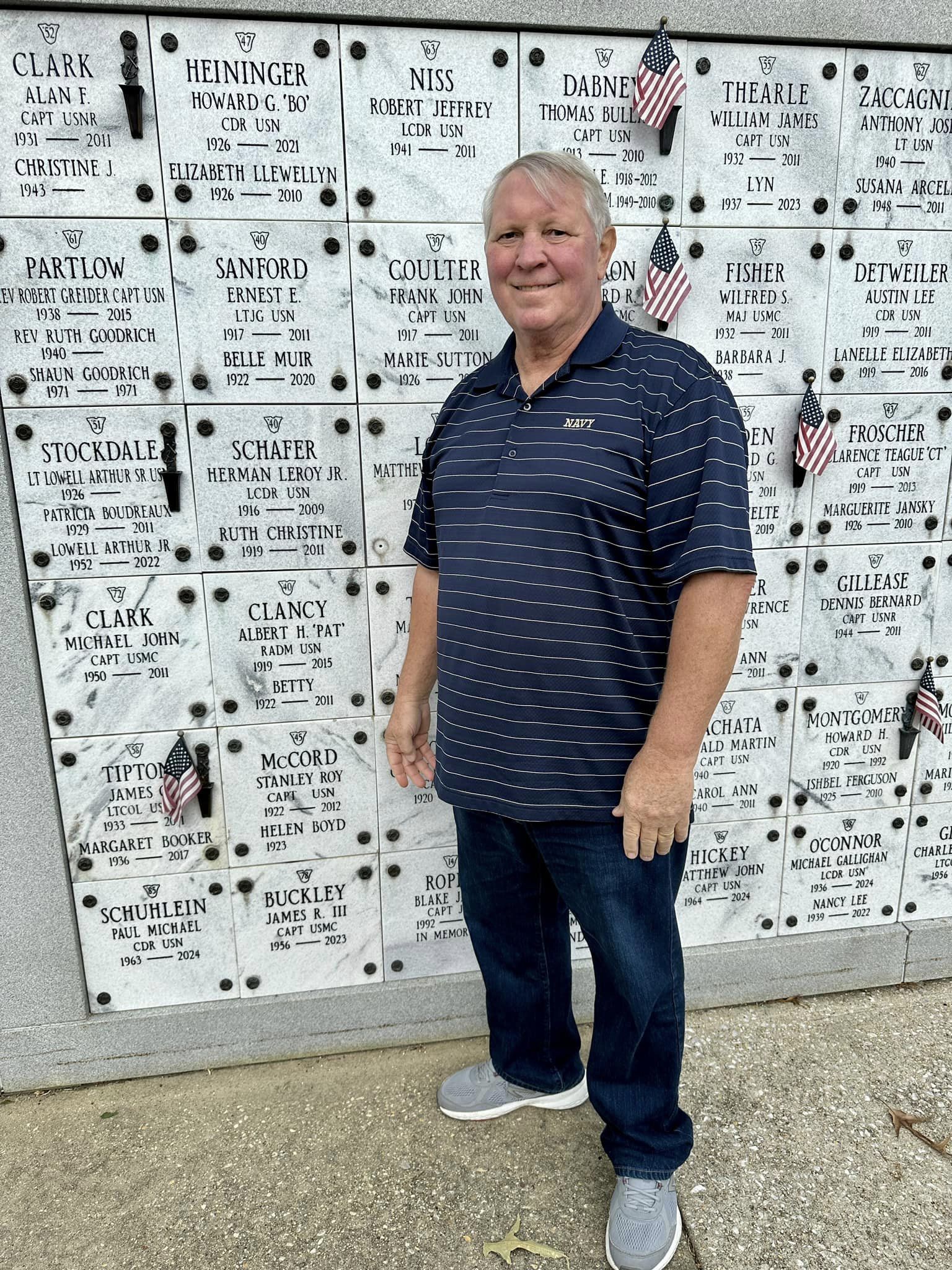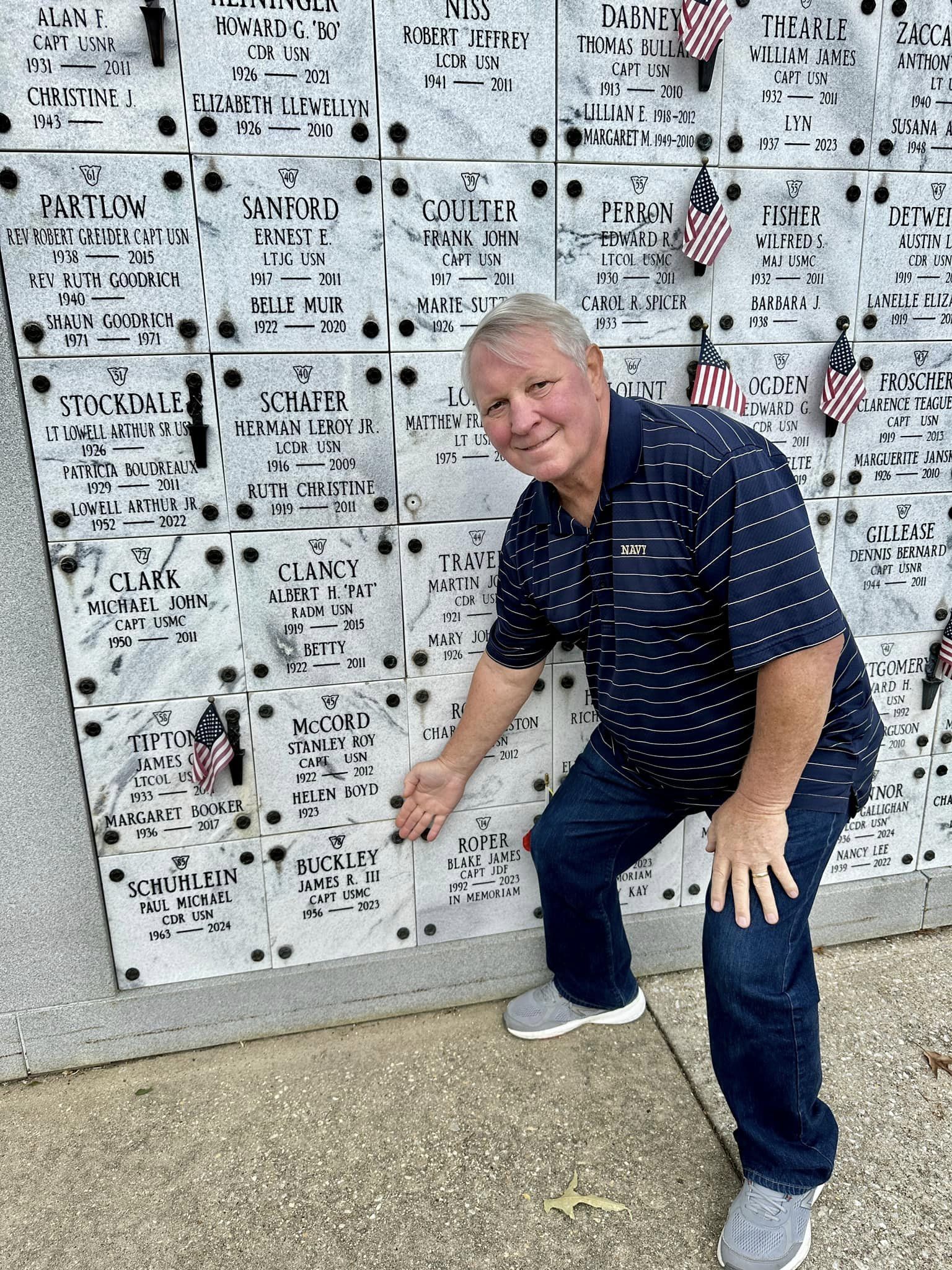 Kim and Jeff Ewin visited the USNA Columbarium to pay respects to company mate Jim Buckley who passed away November 10, 2023, and was interred at the Academy July 24, 2024.
