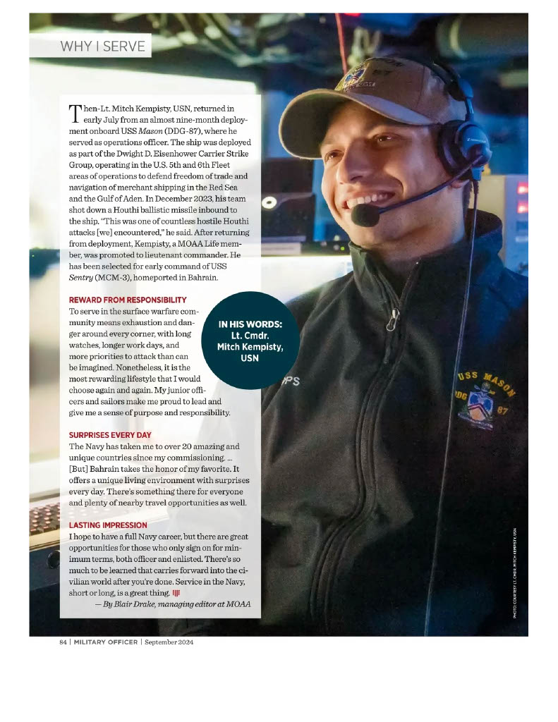 Ray Kempisty (13th Co.) Son Mitch ’14 Featured in September 2024 MOAA Magazine Posted byMatthew Elias March 31, 2025