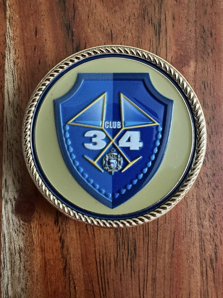 Bob Novak (34th Co.) reports that ‘78’ers from Club 34 helped to celebrate the “re-birth” of 34th Company by purchasing Scott Burns’ designed Club 34 coins for all 124 new Club 34 members and giving them the Club 34 Flag. Mary and he were invited to a picnic to help celebrate the end of AC Year, the “re-birth,” and hand out the coins—great time with a great bunch of kids!…some had even heard about 8th Wing Players!
