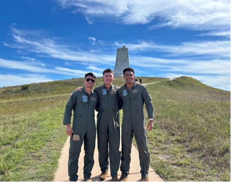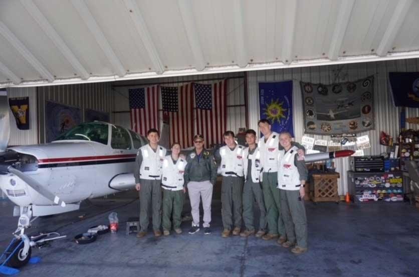 The USNA Intercollegiate Flight Team competed at the Chesapeake (Virginia) Regional Airport 15-19 October earning a win against two other collegiate teams. Five Families from the USNA Hampton Roads Parents Club generously hosted the visiting Midshipmen for four nights providing accommodations coordinated by President Kelly Brown ’95, and a team dinner hosted by PJ Trudell ’04 and his wife Julie. Rudy Costanzo ’78, a USNA Alumni Association Hampton Roads Chapter – Board of Directors member, and a retired NAVY E-2C Hawkeye pilot, provided flight time to Midshipmen who didn’t participate in the airborne challenges. Over three separate flights, NINE Midshipmen were given an airborne tour of Southeastern Virginia and an opportunity to see the Wright Brothers Memorial in Kitty Hawk, N.C. SIX of those Mids were from the class of 2028, the Another Link in the Chain class for Costanzo’s class of 1978.