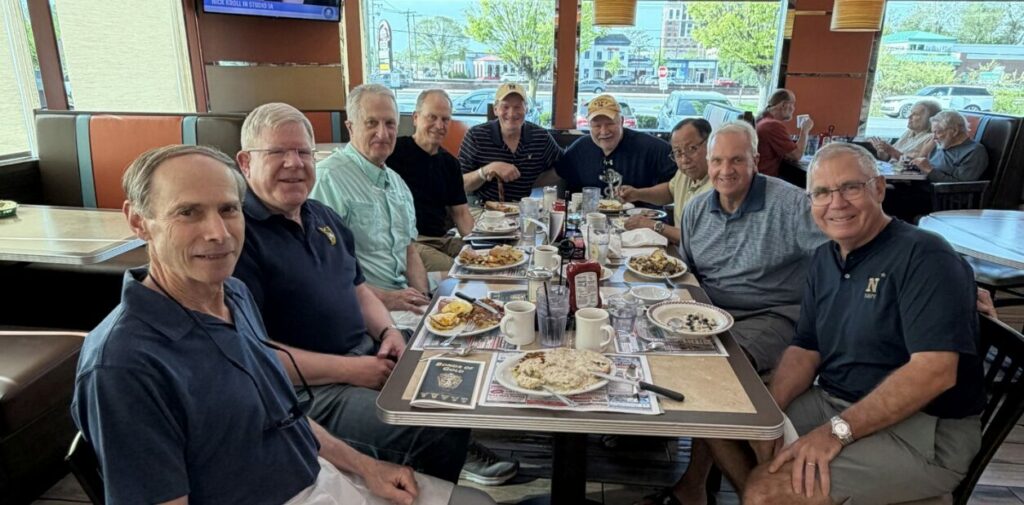 Pictured above is the Great Class of ’78 dining at their monthly ROMEO (Retired Old Men Eating Out) breakfast at the Double T Diner in Annapolis. The breakfast is held on the third Thursday of the month. Pictured left to right…John Cooke, Steve Petri, Fred Webster, Chris Jensen, Eddie Reid, Bob Schmermund, Vince Balderrama, Eddie Hubbard and Chip Jones.